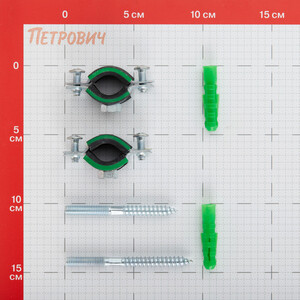 хомут, шпилька М8 – оцинкованная сталь, уплотнитель – резина, дюбель 10х50 мм – полипропилен.