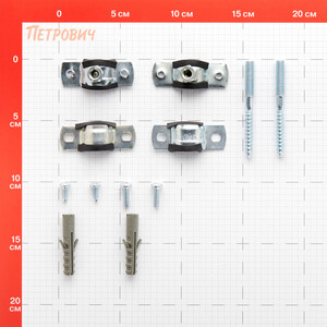 хомут, шпилька М8х80 – оцинкованная сталь, уплотнитель – резина, дюбель 10х50 мм – полипропилен.